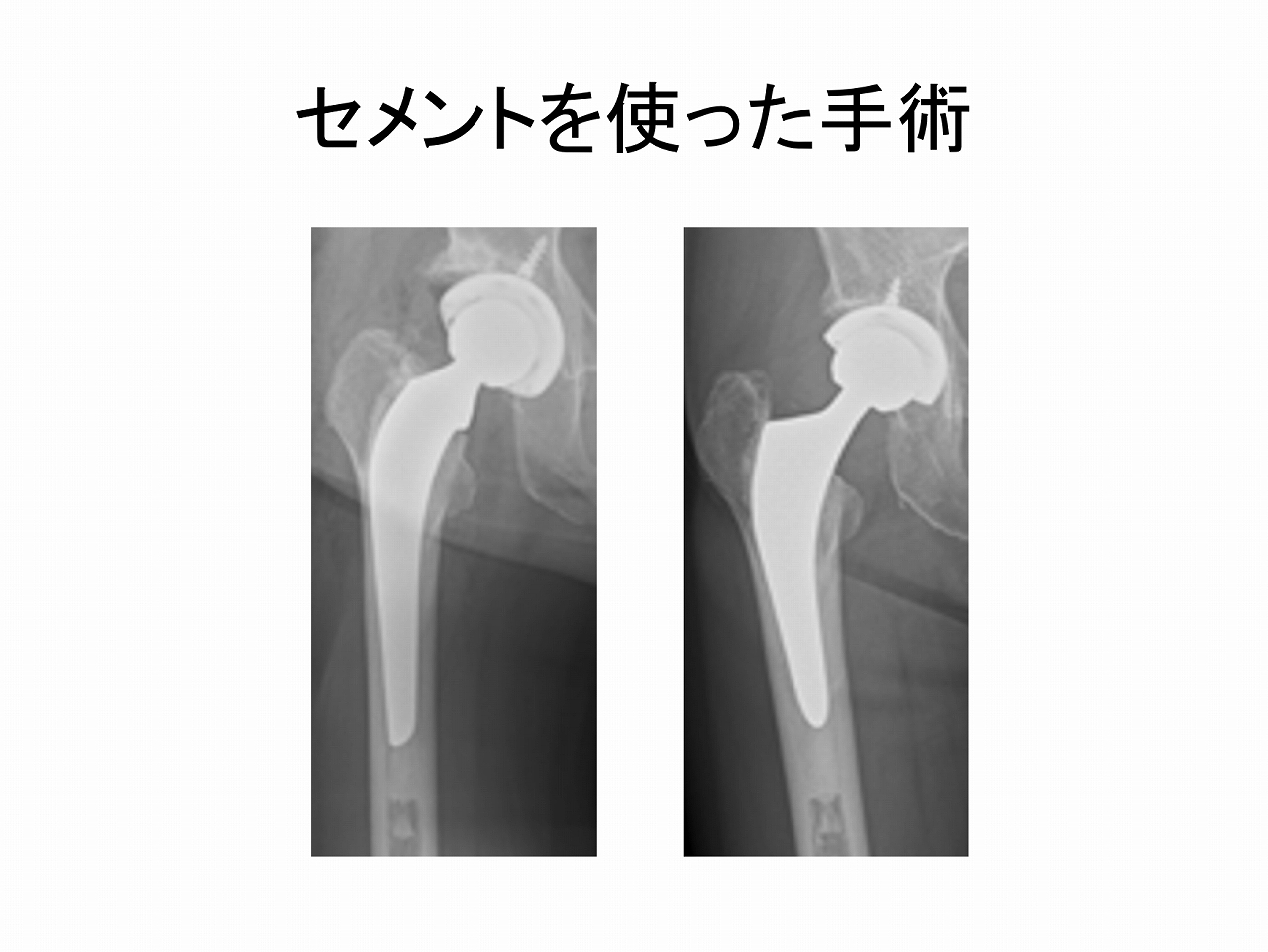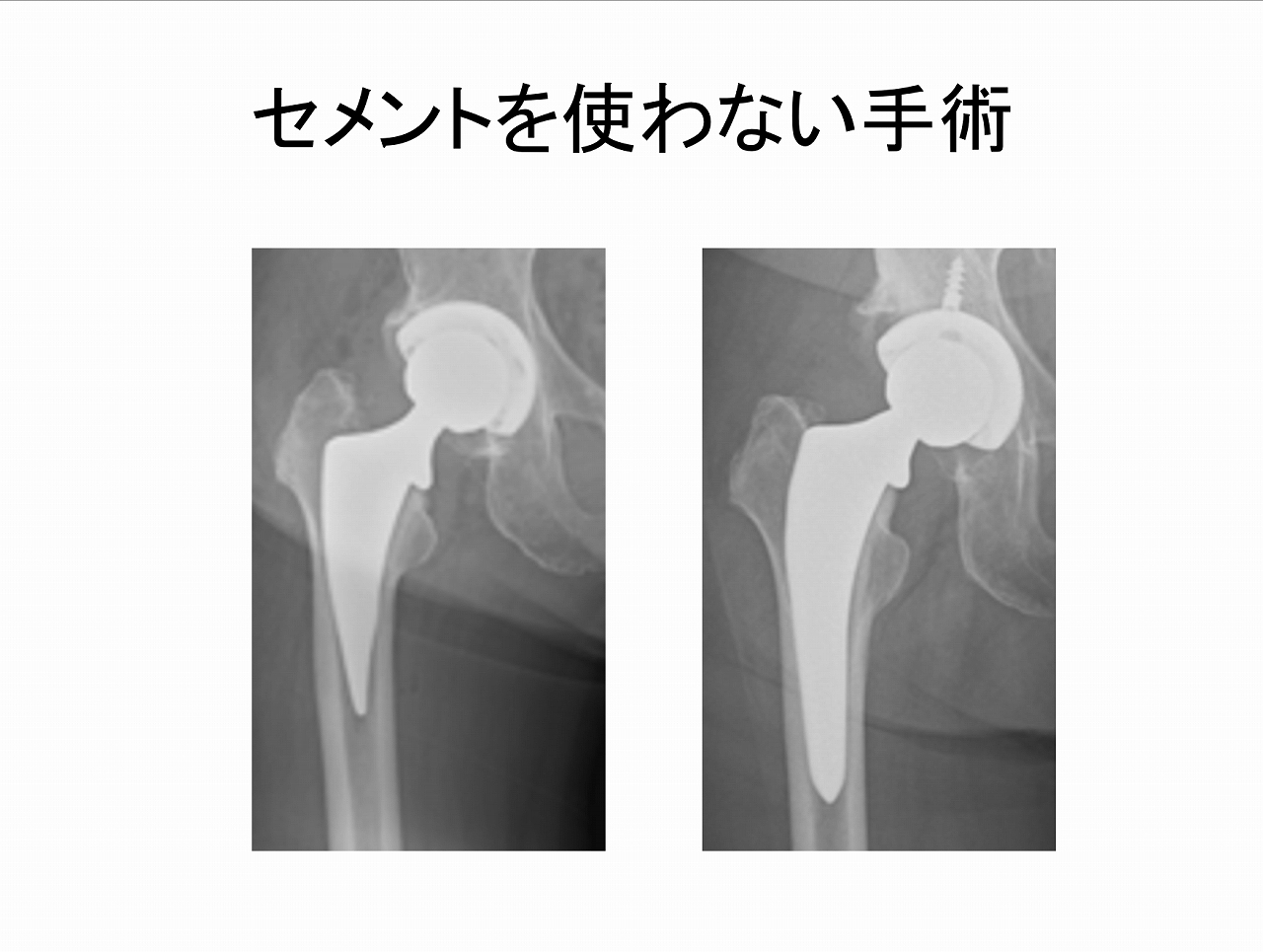 特に骨が弱くなっている(骨粗鬆症)の方は、骨折の危険性が高いです。その場合セメントを使った手術のほうが安全です。