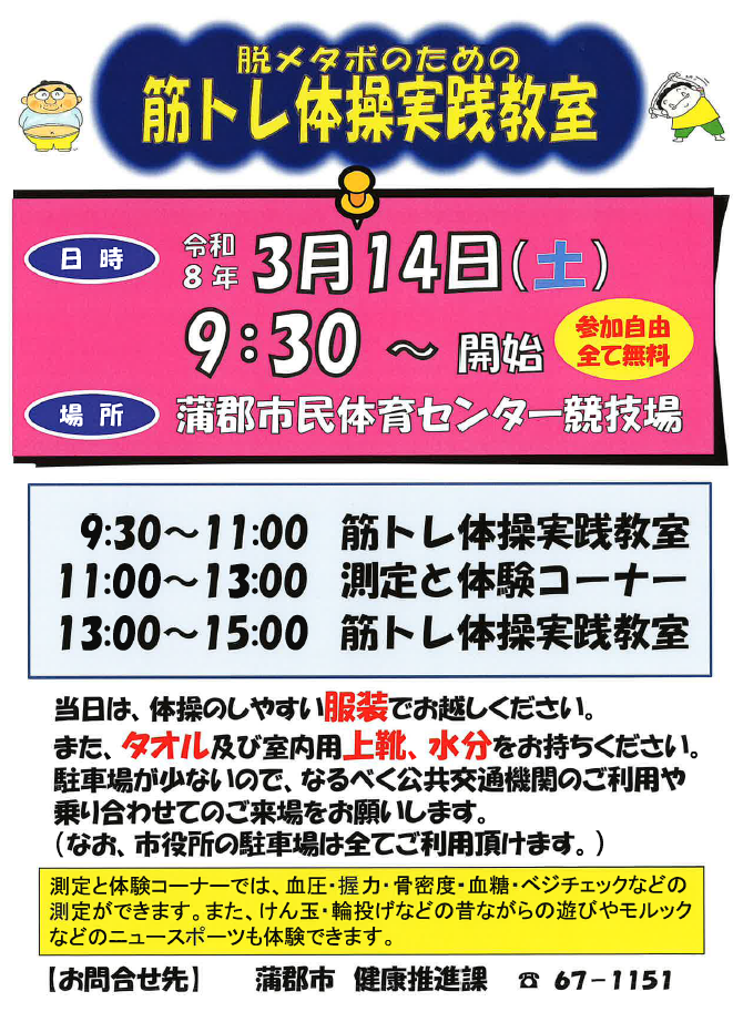3月14日に脱メタボのための筋トレ体操実践教室を行います